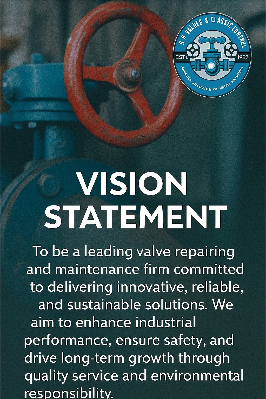 To be a leading valve repairing and maintenance firm committed to delivering innovative, reliable, and sustainable solutions. We aim to support industries in enhancing operational efficiency, ensuring safety, and achieving long-term growth through quality service, technical excellence, and a strong focus on environmental responsibility.”